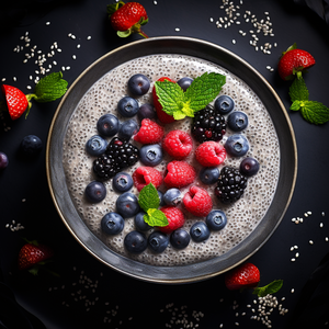 Ein Frühstück aus frischen Beeren und Chia Pudding